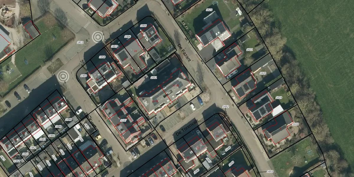 Het perceel waarop De Torenvalk 47 staat heeft een oppervlakte van 940 m². Dit is een groot perceel. De perceeloppervlakte wordt geregistreerd door het Kadaster. Gedetailleerde informatie over de maten van dit perceel kunt u vinden in het rapport Kadastrale kaart met maatvoering van De Torenvalk 47.