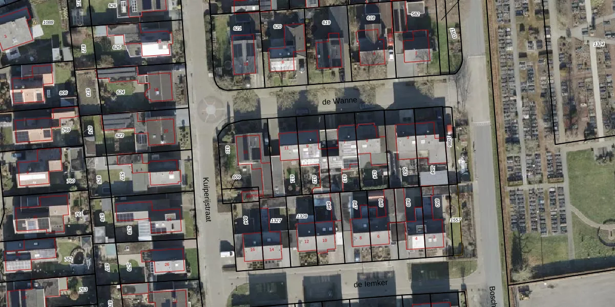 Het perceel waarop de Wanne 9 staat heeft een oppervlakte van 244 m². Dit is een middelgroot perceel. De perceeloppervlakte wordt geregistreerd door het Kadaster. Gedetailleerde informatie over de maten van dit perceel kunt u vinden in het rapport Kadastrale kaart met maatvoering van de Wanne 9.