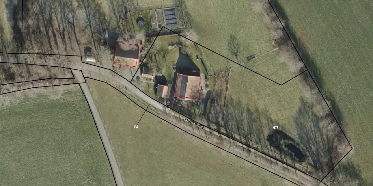 Hamsweg 1 is gelegen op kadastraal perceel WSL02U115. Deze kadastrale aanduiding is uniek en wordt gebruikt door het Kadaster om eigendomsrechten en andere zakelijke rechten vast te leggen. Het perceel maakt onderdeel uit van de kadastrale gemeente Weerselo.