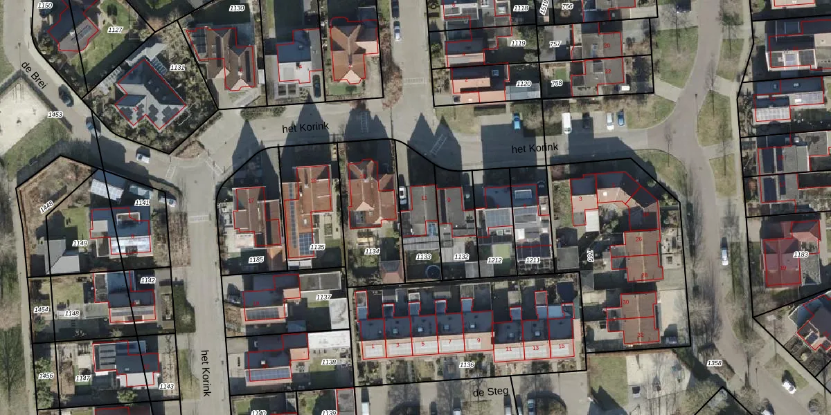 Het perceel waarop het Korink 11 staat heeft een oppervlakte van 285 m². Dit is een middelgroot perceel. De perceeloppervlakte wordt geregistreerd door het Kadaster. Gedetailleerde informatie over de maten van dit perceel kunt u vinden in het rapport Kadastrale kaart met maatvoering van het Korink 11.