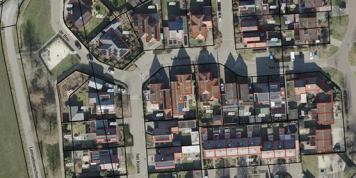 Het perceel waarop het Korink 15 staat heeft een oppervlakte van 422 m². Dit is een groot perceel. De perceeloppervlakte wordt geregistreerd door het Kadaster. Gedetailleerde informatie over de maten van dit perceel kunt u vinden in het rapport Kadastrale kaart met maatvoering van het Korink 15.