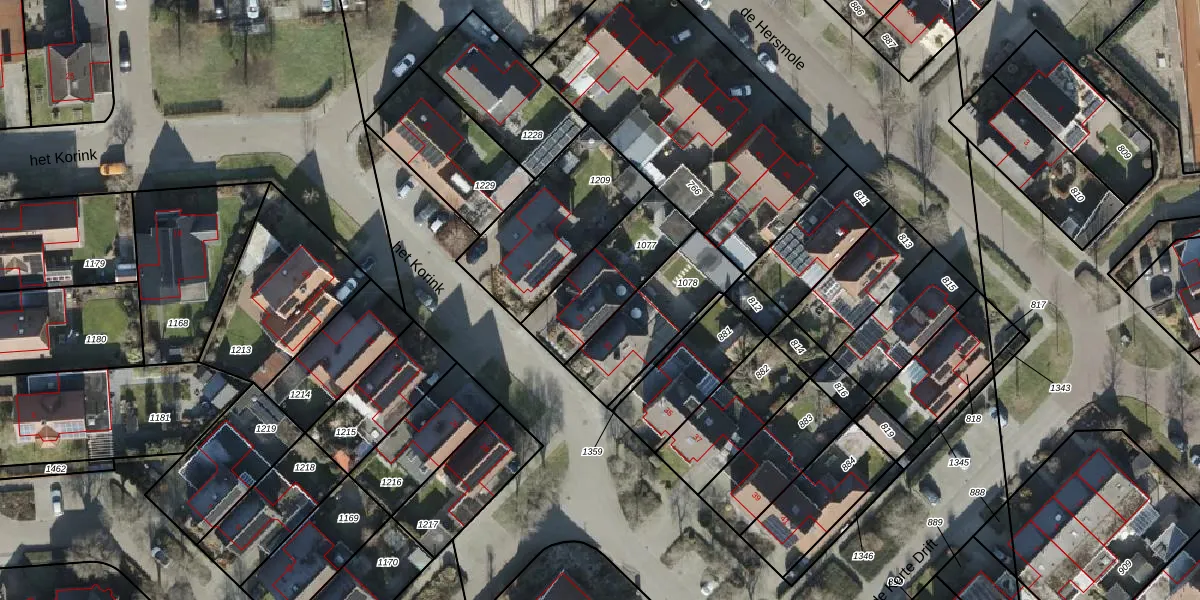 Het perceel waarop het Korink 31 staat heeft een oppervlakte van 320 m². Dit is een groot perceel. De perceeloppervlakte wordt geregistreerd door het Kadaster. Gedetailleerde informatie over de maten van dit perceel kunt u vinden in het rapport Kadastrale kaart met maatvoering van het Korink 31.