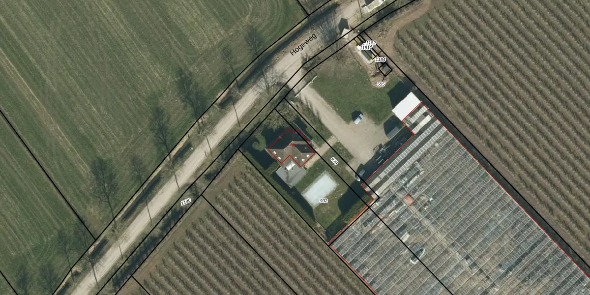 Het perceel waarop Hogeweg 89 staat heeft een oppervlakte van 850 m². Dit is een groot perceel. De perceeloppervlakte wordt geregistreerd door het Kadaster. Gedetailleerde informatie over de maten van dit perceel kunt u vinden in het rapport Kadastrale kaart met maatvoering van Hogeweg 89.