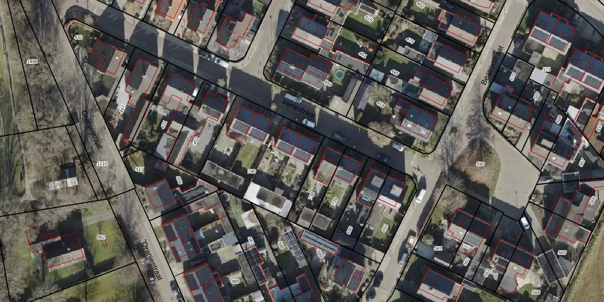 Het perceel waarop Irenestraat 16 staat heeft een oppervlakte van 978 m². Dit is een groot perceel. De perceeloppervlakte wordt geregistreerd door het Kadaster. Gedetailleerde informatie over de maten van dit perceel kunt u vinden in het rapport Kadastrale kaart met maatvoering van Irenestraat 16.