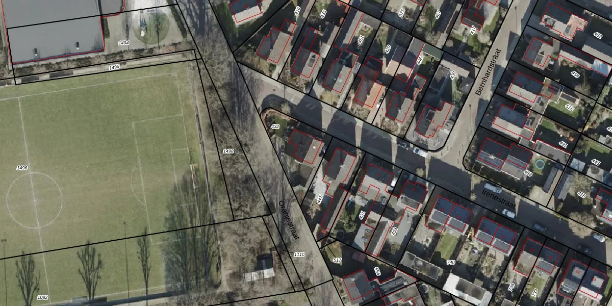 Het perceel waarop Irenestraat 2 staat heeft een oppervlakte van 358 m². Dit is een groot perceel. De perceeloppervlakte wordt geregistreerd door het Kadaster. Gedetailleerde informatie over de maten van dit perceel kunt u vinden in het rapport Kadastrale kaart met maatvoering van Irenestraat 2.