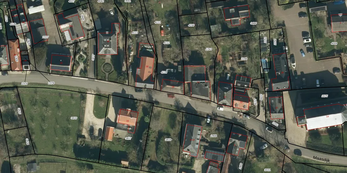 Maasdijk 28 is gelegen op kadastraal perceel RSM00B4112. Deze kadastrale aanduiding is uniek en wordt gebruikt door het Kadaster om eigendomsrechten en andere zakelijke rechten vast te leggen. Het perceel maakt onderdeel uit van de kadastrale gemeente Rossum.