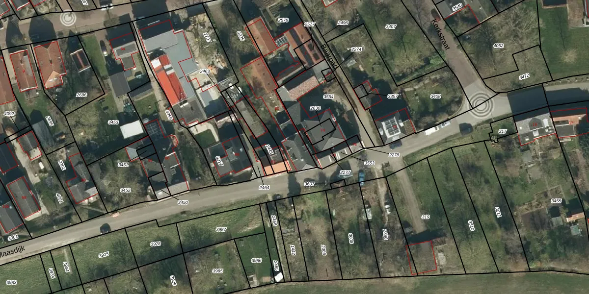 Maasdijk 80 is gelegen op kadastraal perceel RSM00B3025. Deze kadastrale aanduiding is uniek en wordt gebruikt door het Kadaster om eigendomsrechten en andere zakelijke rechten vast te leggen. Het perceel maakt onderdeel uit van de kadastrale gemeente Rossum.
