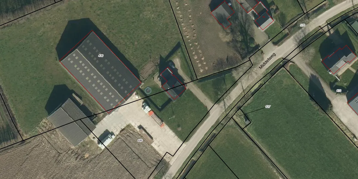Middelweg 6 is gelegen op kadastraal perceel RSM00E646. Deze kadastrale aanduiding is uniek en wordt gebruikt door het Kadaster om eigendomsrechten en andere zakelijke rechten vast te leggen. Het perceel maakt onderdeel uit van de kadastrale gemeente Rossum.