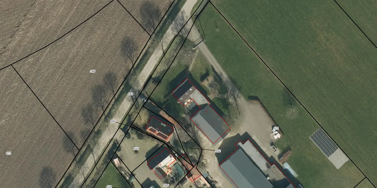 Het adres is gelegen op perceel 521 in de sectie E en de kadastrale gemeente Rossum. De kadastrale aanduiding is aldus RSM00-E-521. De oppervlakte van het perceel is 6970 m². Dat is groter dan gemiddeld in Rossum, waar de gemiddelde perceeloppervlakte op 4373,43 m² ligt. Het grootste perceel in de kadastrale gemeente is 27,8 ha. Het kleinste perceel heeft een oppervlakte van 0 m². Er zijn geen andere adressen aanwezig op het perceel. De huidige grenzen van het perceel zijn digitaal in de Basisregistratie Kadaster (BRK) geregistreerd op 05-11-2001.