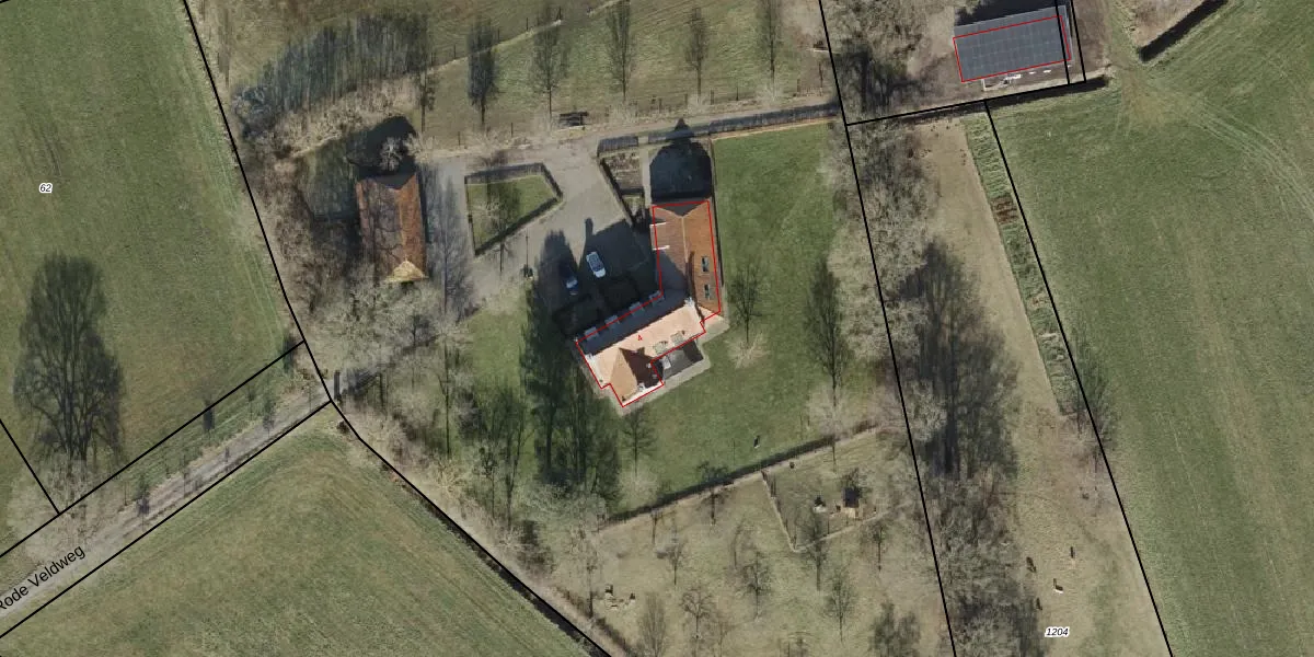Het perceel waarop Rode Veldweg 4 staat heeft een oppervlakte van 1,7 ha. Dit is een zeer groot perceel. De perceeloppervlakte wordt geregistreerd door het Kadaster. Gedetailleerde informatie over de maten van dit perceel kunt u vinden in het rapport Kadastrale kaart met maatvoering van Rode Veldweg 4.