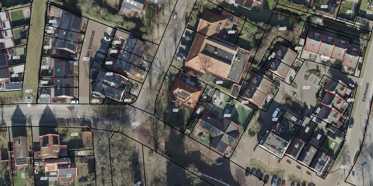 Gebruik de zoekbalk of klik op een perceel voor informatie over de adressen binnen dit perceel.
