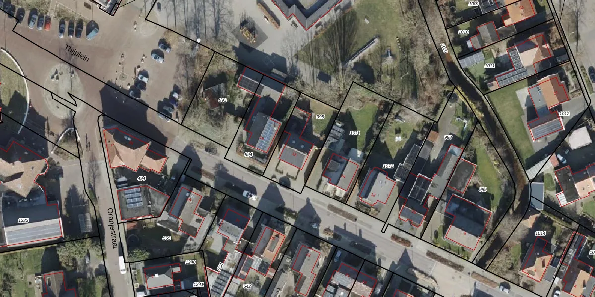 Het perceel waarop Thijstraat 16 staat heeft een oppervlakte van 440 m². Dit is een groot perceel. De perceeloppervlakte wordt geregistreerd door het Kadaster. Gedetailleerde informatie over de maten van dit perceel kunt u vinden in het rapport Kadastrale kaart met maatvoering van Thijstraat 16.