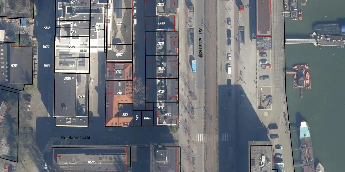 Het adres is gelegen op perceel 1369 in de sectie AG en de kadastrale gemeente Rotterdam. De kadastrale aanduiding is aldus RTD04-AG-1369. De gemiddelde perceelgrootte in Rotterdam is 1239,97 m². Dit perceel is kleiner: de perceeloppervlakte bedraagt 260 m². Het kleinste perceel in de kadastrale gemeente is 0 m² groot. De grootste perceeloppervlakte is 17,3 ha. Op het perceel liggen in totaal 13 adressen. De huidige grenzen van het perceel zijn digitaal in de Basisregistratie Kadaster (BRK) geregistreerd op 01-10-2007.