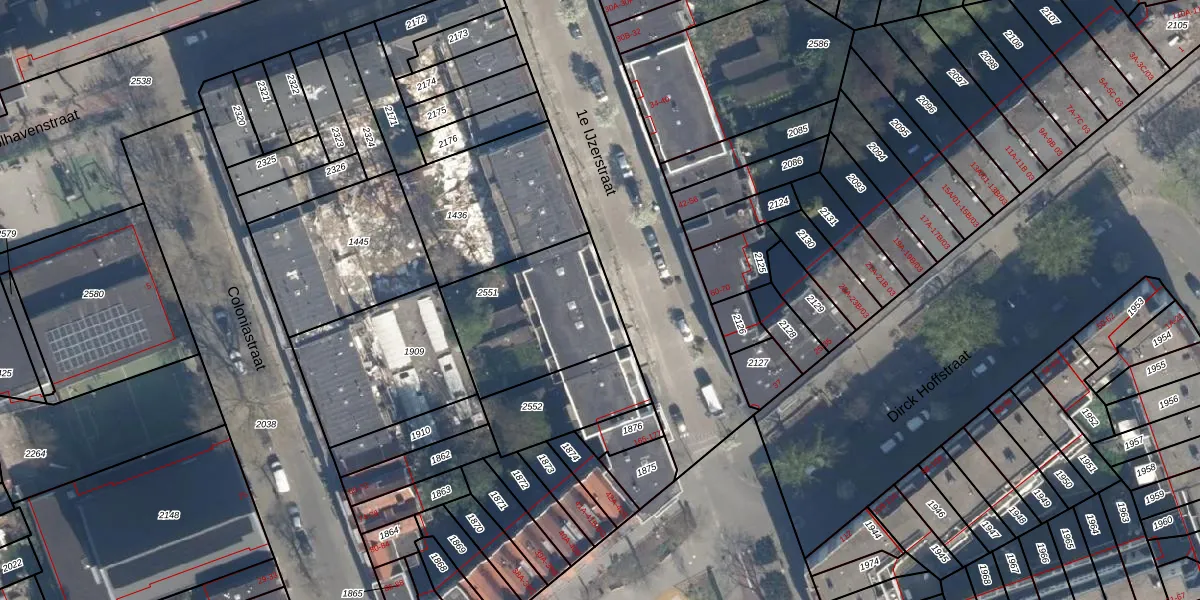 Het perceel waarop 1e IJzerstraat 147 staat heeft een oppervlakte van 524 m². Dit is een groot perceel. De perceeloppervlakte wordt geregistreerd door het Kadaster. Gedetailleerde informatie over de maten van dit perceel kunt u vinden in het rapport Kadastrale kaart met maatvoering van 1e IJzerstraat 147.
