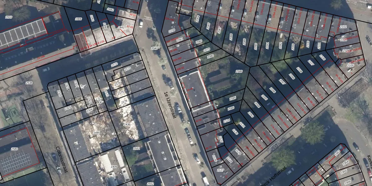 Het perceel waarop 1e IJzerstraat 38-A staat heeft een oppervlakte van 693 m². Dit is een groot perceel. De perceeloppervlakte wordt geregistreerd door het Kadaster. Gedetailleerde informatie over de maten van dit perceel kunt u vinden in het rapport Kadastrale kaart met maatvoering van 1e IJzerstraat 38-A.