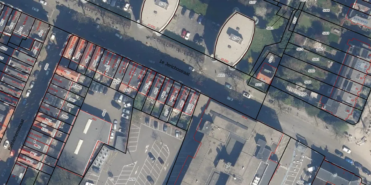 1e Jerichostraat 26-B-02 is gelegen op kadastraal perceel KLG00G4483. Deze kadastrale aanduiding is uniek en wordt gebruikt door het Kadaster om eigendomsrechten en andere zakelijke rechten vast te leggen. Het perceel maakt onderdeel uit van de kadastrale gemeente Kralingen.