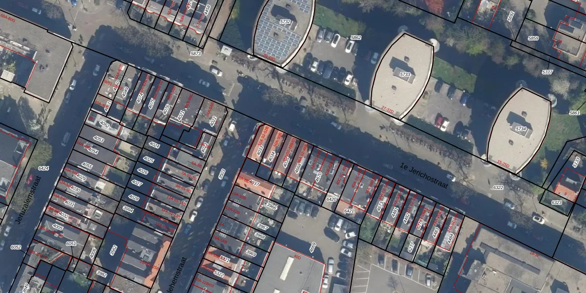 1e Jerichostraat 48-B-01 is gelegen op kadastraal perceel KLG00G4035. Deze kadastrale aanduiding is uniek en wordt gebruikt door het Kadaster om eigendomsrechten en andere zakelijke rechten vast te leggen. Het perceel maakt onderdeel uit van de kadastrale gemeente Kralingen.