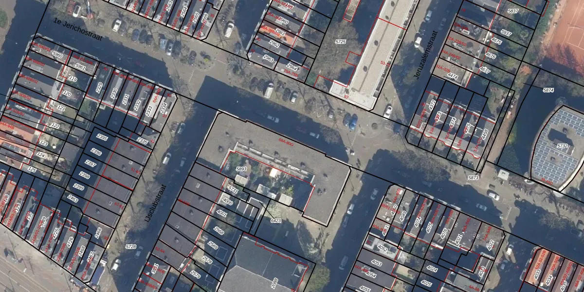 1e Jerichostraat 74-A is gelegen op kadastraal perceel KLG00G5893. Deze kadastrale aanduiding is uniek en wordt gebruikt door het Kadaster om eigendomsrechten en andere zakelijke rechten vast te leggen. Het perceel maakt onderdeel uit van de kadastrale gemeente Kralingen.