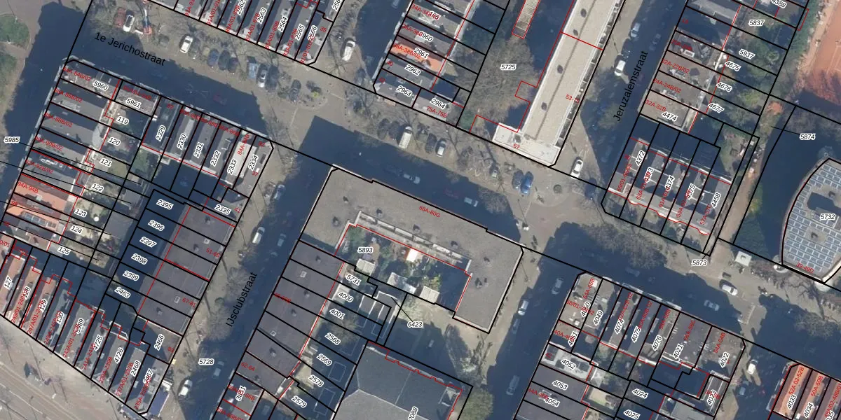1e Jerichostraat 74-B is gelegen op kadastraal perceel KLG00G5893. Deze kadastrale aanduiding is uniek en wordt gebruikt door het Kadaster om eigendomsrechten en andere zakelijke rechten vast te leggen. Het perceel maakt onderdeel uit van de kadastrale gemeente Kralingen.