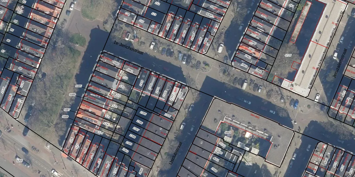 1e Jerichostraat 84-A is gelegen op kadastraal perceel KLG00G2333. Deze kadastrale aanduiding is uniek en wordt gebruikt door het Kadaster om eigendomsrechten en andere zakelijke rechten vast te leggen. Het perceel maakt onderdeel uit van de kadastrale gemeente Kralingen.