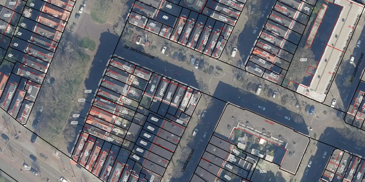 1e Jerichostraat 86-B is gelegen op kadastraal perceel KLG00G2332. Deze kadastrale aanduiding is uniek en wordt gebruikt door het Kadaster om eigendomsrechten en andere zakelijke rechten vast te leggen. Het perceel maakt onderdeel uit van de kadastrale gemeente Kralingen.