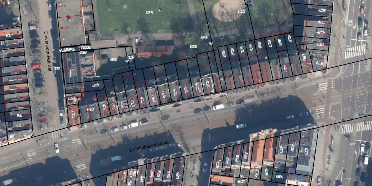 Het perceel waarop het adres ligt is RTD06-S-3925. De afkorting 'RTD06' staat voor kadastrale gemeente Rotterdam. De gemiddelde perceelgrootte in Rotterdam is 692,84 m². Dit perceel is kleiner: de perceeloppervlakte bedraagt 126 m². Het kleinste perceel in de kadastrale gemeente is 0 m² groot. De grootste perceeloppervlakte is 4,7 ha. Er zijn 4 adressen aanwezig op het perceel. De laatste wijziging in het de Basisregistratie Kadaster (BRK) was op 13-03-2003.
