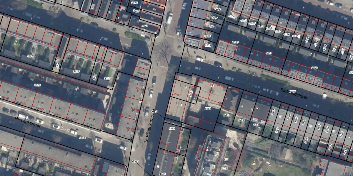 1e Pijnackerstraat 30 is gelegen op kadastraal perceel RTD07W5557. Deze kadastrale aanduiding is uniek en wordt gebruikt door het Kadaster om eigendomsrechten en andere zakelijke rechten vast te leggen. Het perceel maakt onderdeel uit van de kadastrale gemeente Rotterdam.