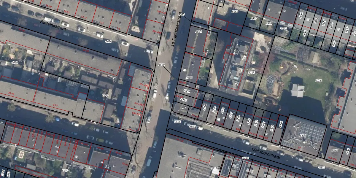 1e Pijnackerstraat 52-B is gelegen op kadastraal perceel RTD07W2554. Deze kadastrale aanduiding is uniek en wordt gebruikt door het Kadaster om eigendomsrechten en andere zakelijke rechten vast te leggen. Het perceel maakt onderdeel uit van de kadastrale gemeente Rotterdam.