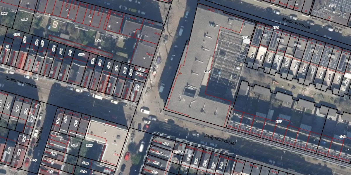 Het perceel waarop het adres ligt is RTD07-W-5796. De afkorting 'RTD07' staat voor kadastrale gemeente Rotterdam. De gemiddelde perceeloppervlakte in de kadastrale gemeente Rotterdam is 506,86 m². Dit perceel is met zijn 3061 m² dus groter dan gemiddeld. Het grootste perceel in de kadastrale gemeente is 10,8 ha. Het kleinste perceel heeft een oppervlakte van 0 m². Op het perceel liggen in totaal 31 adressen. De laatste wijziging in het de Basisregistratie Kadaster (BRK) was op 17-01-2007.