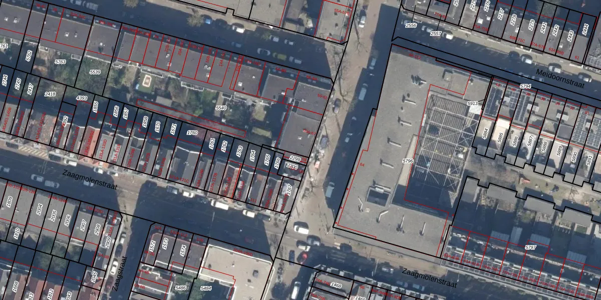 Het adres is gelegen op perceel 5540 in de sectie W en de kadastrale gemeente Rotterdam. De kadastrale aanduiding is aldus RTD07-W-5540. De oppervlakte van het perceel is 1900 m². Dat is groter dan gemiddeld in Rotterdam, waar de gemiddelde perceeloppervlakte op 506,86 m² ligt. Het kleinste perceel in de kadastrale gemeente is 0 m² groot. De grootste perceeloppervlakte is 10,8 ha. Op het perceel zijn 34 adressen aanwezig. In de Basisregistratie Kadaster (BRK) werden de grenzen van het perceel geregistreerd op 17-01-2007.