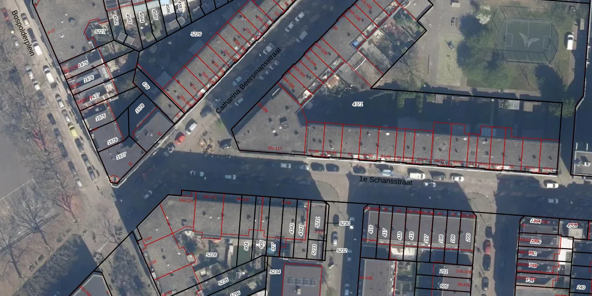 Het adres is gelegen op perceel 4771 in de sectie H en de kadastrale gemeente Delfshaven. De kadastrale aanduiding is aldus DHV00-H-4771. De oppervlakte van het perceel is 4040 m². Dat is groter dan gemiddeld in Delfshaven, waar de gemiddelde perceeloppervlakte op 628,53 m² ligt. Het kleinste perceel in de kadastrale gemeente is 0 m² groot. De grootste perceeloppervlakte is 22,2 ha. Op het perceel zijn 84 adressen aanwezig. In de Basisregistratie Kadaster (BRK) werden de grenzen van het perceel geregistreerd op 03-07-2006.