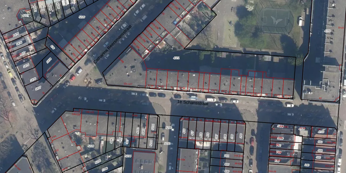 Het perceel waarop 1e Schansstraat 91 staat heeft een oppervlakte van 4040 m². Dit is een zeer groot perceel. De perceeloppervlakte wordt geregistreerd door het Kadaster. Gedetailleerde informatie over de maten van dit perceel kunt u vinden in het rapport Kadastrale kaart met maatvoering van 1e Schansstraat 91.