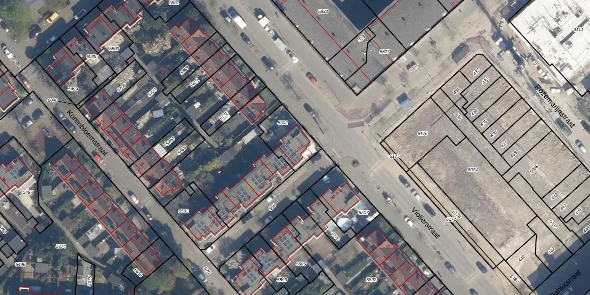 Het adres is gelegen op perceel 5502 in de sectie G en de kadastrale gemeente Charlois. De kadastrale aanduiding is aldus CLS00-G-5502. Het perceel is kleiner dan gemiddeld in Charlois. Het perceel is 250 m² groot, terwijl het gemiddelde ligt op 1147,69 m². Het kleinste perceel in de kadastrale gemeente is 0 m² groot. De grootste perceeloppervlakte is 1,09 km². Er zijn 2 adressen aanwezig op het perceel. De huidige grenzen van het perceel zijn digitaal in de Basisregistratie Kadaster (BRK) geregistreerd op 23-01-2006.