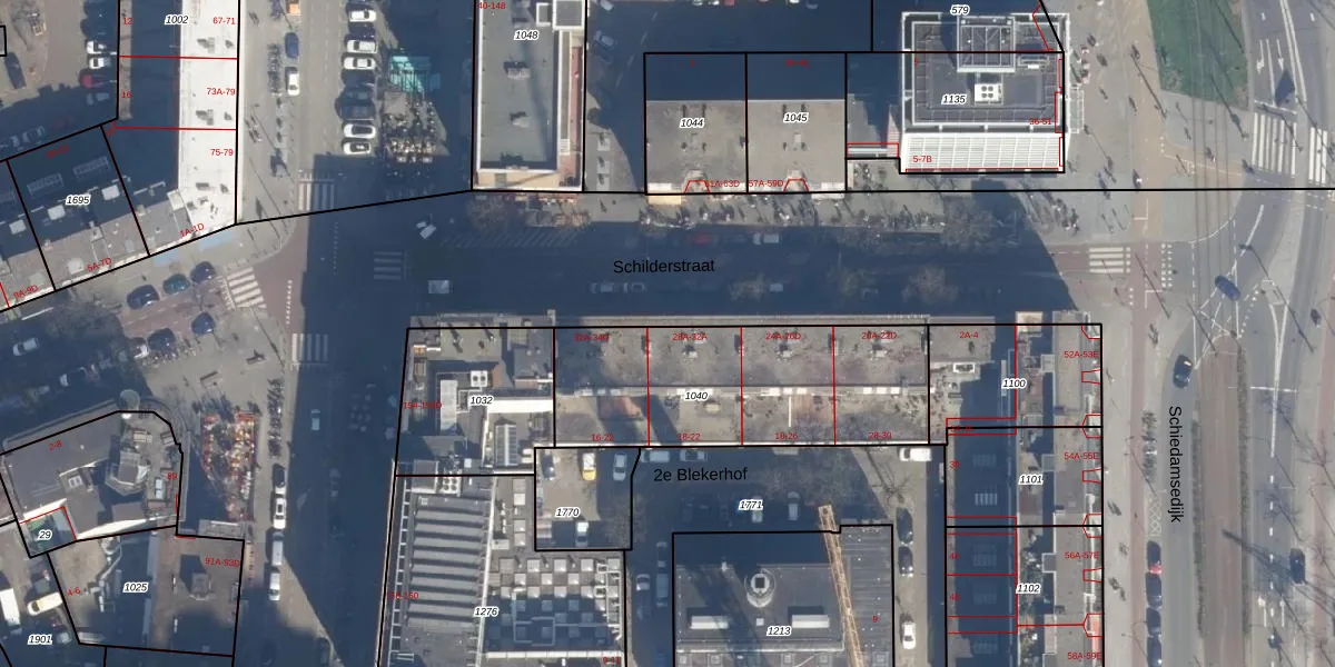 Het adres is gelegen op perceel 1040 in de sectie AG en de kadastrale gemeente Rotterdam. De kadastrale aanduiding is aldus RTD04-AG-1040. Het perceel is kleiner dan gemiddeld in Rotterdam. Het perceel is 1008 m² groot, terwijl het gemiddelde ligt op 1239,97 m². Het kleinste perceel in de kadastrale gemeente is 0 m² groot. De grootste perceeloppervlakte is 17,3 ha. Er zijn 40 adressen aanwezig op het perceel. De laatste wijziging in het de Basisregistratie Kadaster (BRK) was op 01-10-2007.