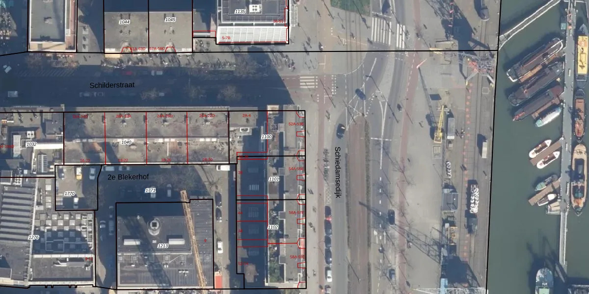 Het adres ligt op het perceel RTD04-AG-1100, dat zich in de kadastrale gemeente Rotterdam bevindt. Het perceel is kleiner dan gemiddeld in Rotterdam. Het perceel is 406 m² groot, terwijl het gemiddelde ligt op 1240,47 m². Het kleinste perceel in de kadastrale gemeente is 0 m² groot. De grootste perceeloppervlakte is 17,3 ha. Op het perceel liggen in totaal 17 adressen. De laatste wijziging in het de Basisregistratie Kadaster (BRK) was op 01-10-2007.