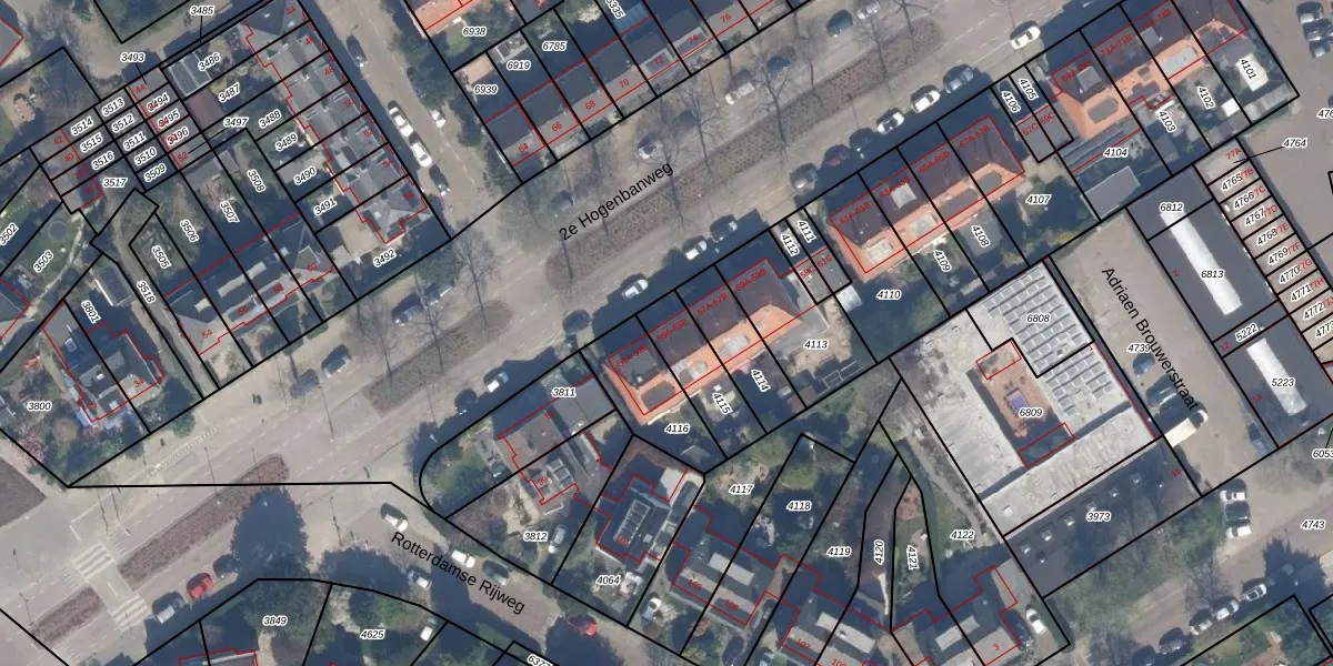 2e Hogenbanweg 55-B is gelegen op kadastraal perceel OVS00C4115. Deze kadastrale aanduiding is uniek en wordt gebruikt door het Kadaster om eigendomsrechten en andere zakelijke rechten vast te leggen. Het perceel maakt onderdeel uit van de kadastrale gemeente Overschie.