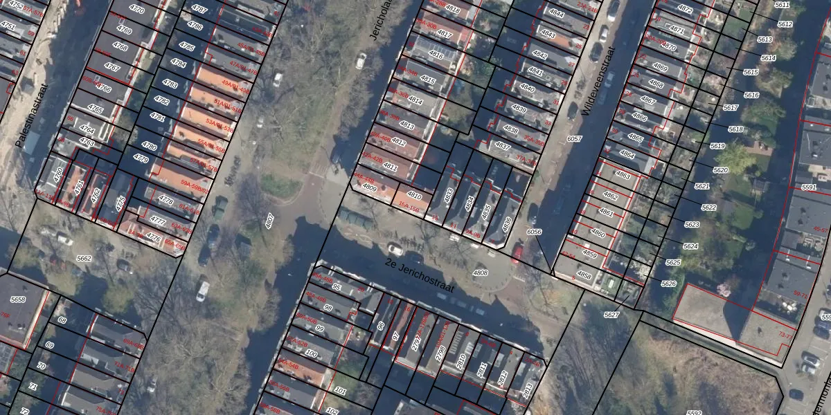Het perceel waarop 2e Jerichostraat 15-B staat heeft een oppervlakte van 52 m². Dit is een klein perceel. De perceeloppervlakte wordt geregistreerd door het Kadaster. Gedetailleerde informatie over de maten van dit perceel kunt u vinden in het rapport Kadastrale kaart met maatvoering van 2e Jerichostraat 15-B.