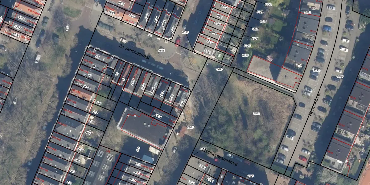 Het perceel waarop 2e Jerichostraat 2-B staat heeft een oppervlakte van 95 m². Dit is een klein perceel. De perceeloppervlakte wordt geregistreerd door het Kadaster. Gedetailleerde informatie over de maten van dit perceel kunt u vinden in het rapport Kadastrale kaart met maatvoering van 2e Jerichostraat 2-B.