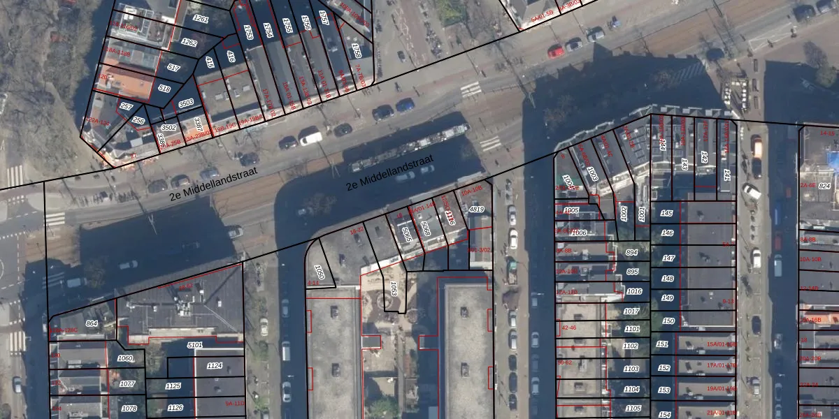 Het perceel waarop 2e Middellandstraat 14-A-02 staat heeft een oppervlakte van 92 m². Dit is een klein perceel. De perceeloppervlakte wordt geregistreerd door het Kadaster. Gedetailleerde informatie over de maten van dit perceel kunt u vinden in het rapport Kadastrale kaart met maatvoering van 2e Middellandstraat 14-A-02.