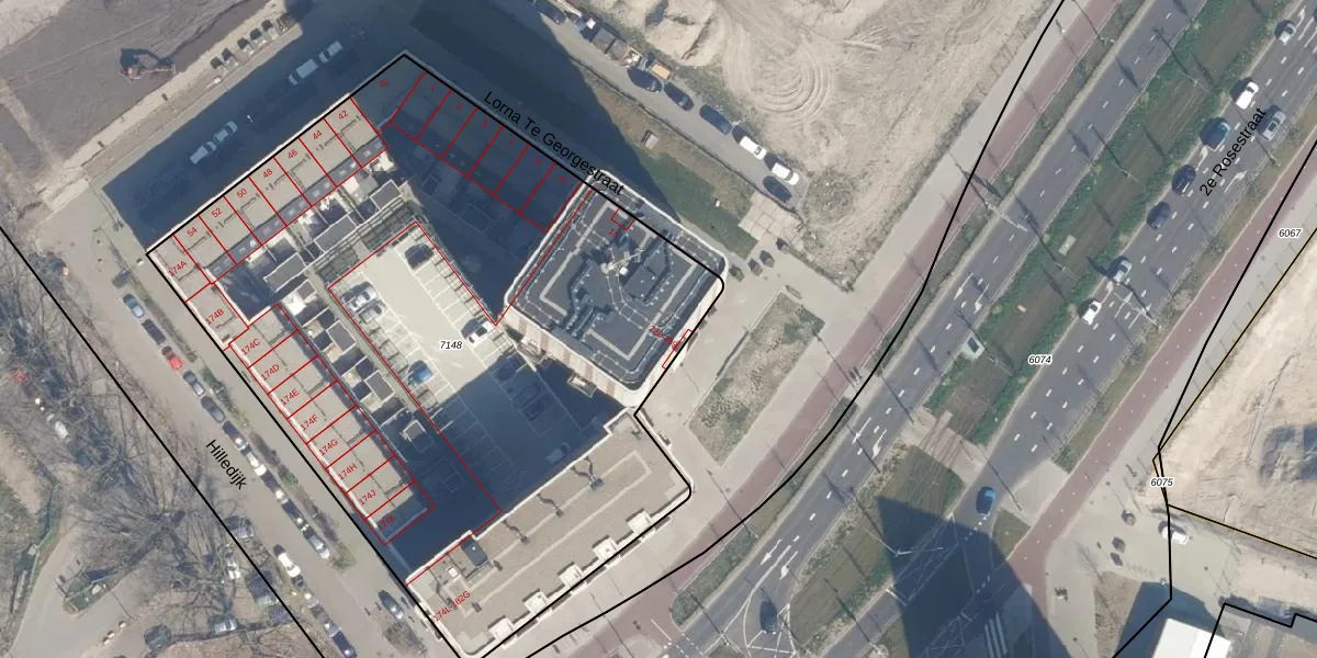 Het adres ligt op het perceel RTD05-Q-7148, dat zich in de kadastrale gemeente Rotterdam bevindt. Het perceel is met 4405 m² relatief groot. Het gemiddelde ligt in de kadastrale gemeente Rotterdam op 1401,79 m². Het grootste perceel in de kadastrale gemeente is 36,8 ha. Het kleinste perceel heeft een oppervlakte van 0 m². Op het perceel liggen in totaal 141 adressen. De huidige grenzen van het perceel zijn digitaal in de Basisregistratie Kadaster (BRK) geregistreerd op 23-06-2025.
