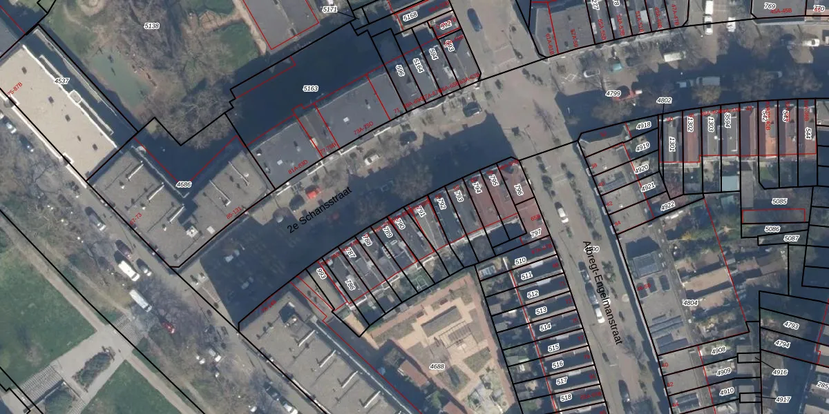 Het perceel waarop 2e Schansstraat 66-B staat heeft een oppervlakte van 93 m². Dit is een klein perceel. De perceeloppervlakte wordt geregistreerd door het Kadaster. Gedetailleerde informatie over de maten van dit perceel kunt u vinden in het rapport Kadastrale kaart met maatvoering van 2e Schansstraat 66-B.