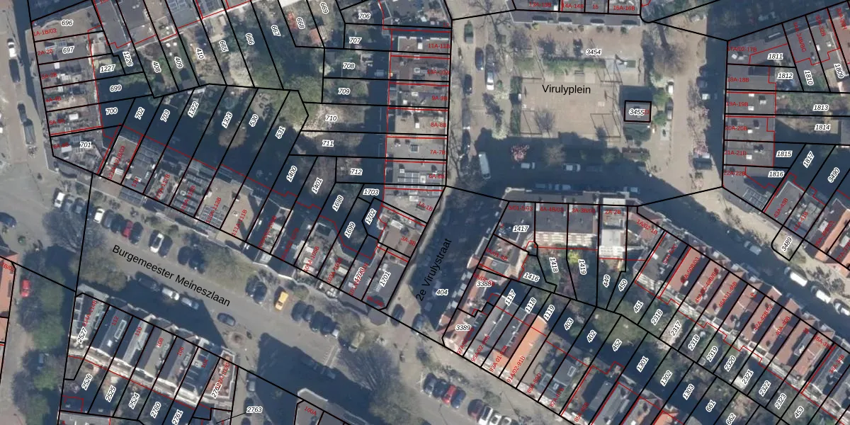 2e Virulystraat 1-B is gelegen op kadastraal perceel DHV00I1703. Deze kadastrale aanduiding is uniek en wordt gebruikt door het Kadaster om eigendomsrechten en andere zakelijke rechten vast te leggen. Het perceel maakt onderdeel uit van de kadastrale gemeente Delfshaven.