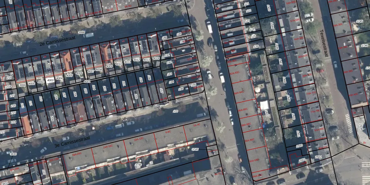 3e Carnissestraat 1-B is gelegen op kadastraal perceel CLS00H196. Deze kadastrale aanduiding is uniek en wordt gebruikt door het Kadaster om eigendomsrechten en andere zakelijke rechten vast te leggen. Het perceel maakt onderdeel uit van de kadastrale gemeente Charlois.