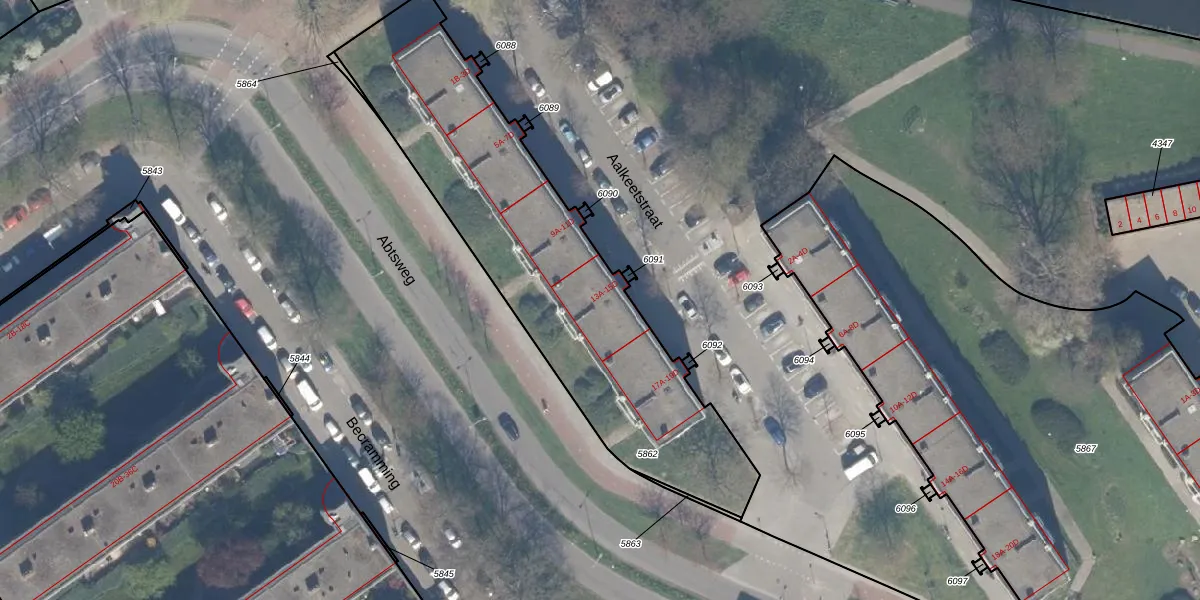 Aalkeetstraat 13-A is gelegen op kadastraal perceel OVS00C5862. Deze kadastrale aanduiding is uniek en wordt gebruikt door het Kadaster om eigendomsrechten en andere zakelijke rechten vast te leggen. Het perceel maakt onderdeel uit van de kadastrale gemeente Overschie.