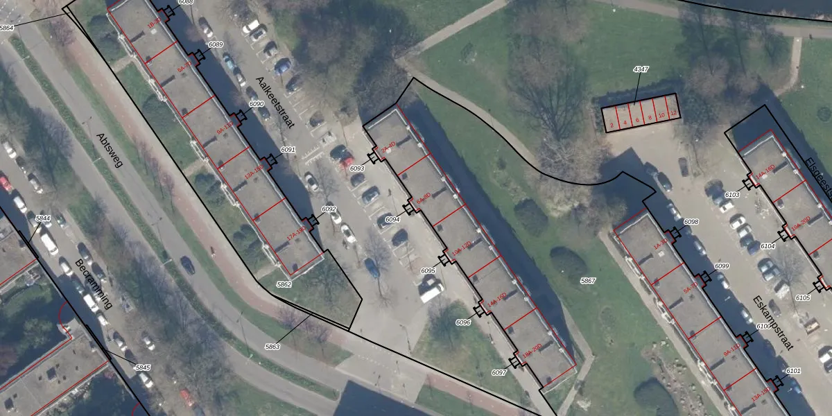 Het perceel waarop Aalkeetstraat 8-D staat heeft een oppervlakte van 4655 m². Dit is een zeer groot perceel. De perceeloppervlakte wordt geregistreerd door het Kadaster. Gedetailleerde informatie over de maten van dit perceel kunt u vinden in het rapport Kadastrale kaart met maatvoering van Aalkeetstraat 8-D.