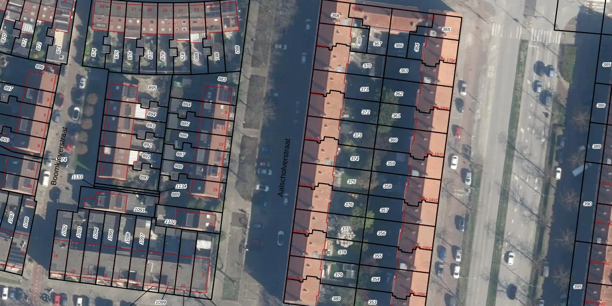Aalscholverstraat 12-B is gelegen op kadastraal perceel CLS00I374. Deze kadastrale aanduiding is uniek en wordt gebruikt door het Kadaster om eigendomsrechten en andere zakelijke rechten vast te leggen. Het perceel maakt onderdeel uit van de kadastrale gemeente Charlois.