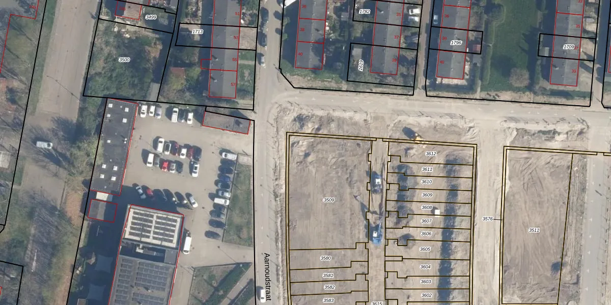 Het perceel waarop Aarnoudstraat 70 staat heeft een oppervlakte van 957 m². Dit is een groot perceel. De perceeloppervlakte wordt geregistreerd door het Kadaster. Gedetailleerde informatie over de maten van dit perceel kunt u vinden in het rapport Kadastrale kaart met maatvoering van Aarnoudstraat 70.