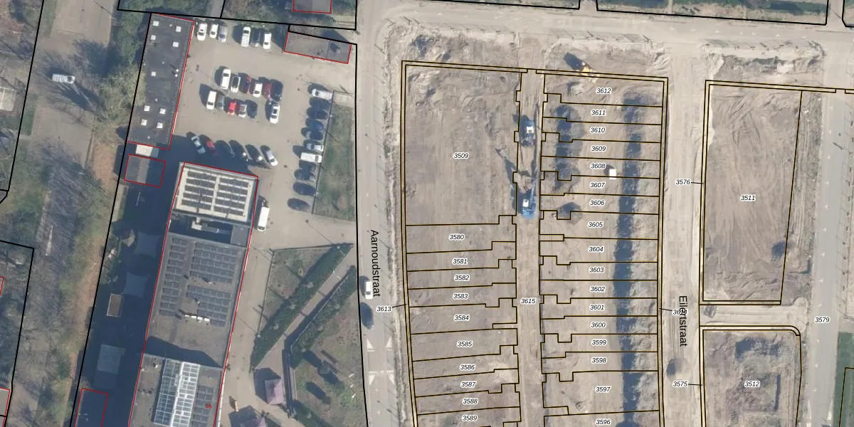 Het perceel waarop Aarnoudstraat 82 staat heeft een oppervlakte van 957 m². Dit is een groot perceel. De perceeloppervlakte wordt geregistreerd door het Kadaster. Gedetailleerde informatie over de maten van dit perceel kunt u vinden in het rapport Kadastrale kaart met maatvoering van Aarnoudstraat 82.