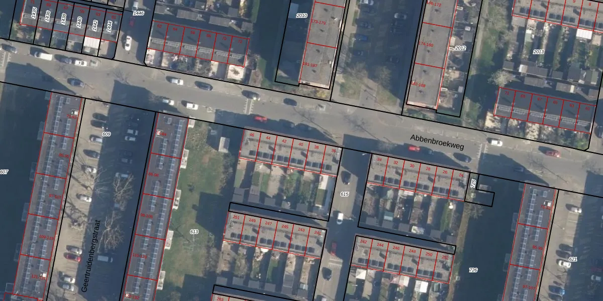 Abbenbroekweg 40 is gelegen op kadastraal perceel CLS00L613. Deze kadastrale aanduiding is uniek en wordt gebruikt door het Kadaster om eigendomsrechten en andere zakelijke rechten vast te leggen. Het perceel maakt onderdeel uit van de kadastrale gemeente Charlois.