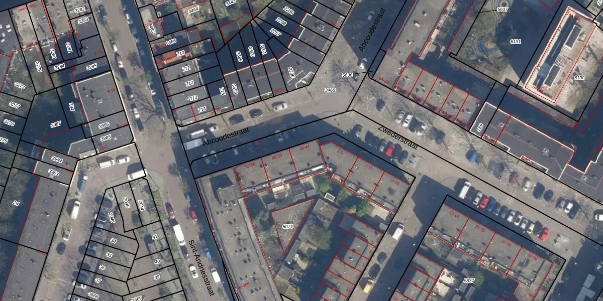 Abcoudestraat 42 is gelegen op kadastraal perceel CLS00G6074. Deze kadastrale aanduiding is uniek en wordt gebruikt door het Kadaster om eigendomsrechten en andere zakelijke rechten vast te leggen. Het perceel maakt onderdeel uit van de kadastrale gemeente Charlois.